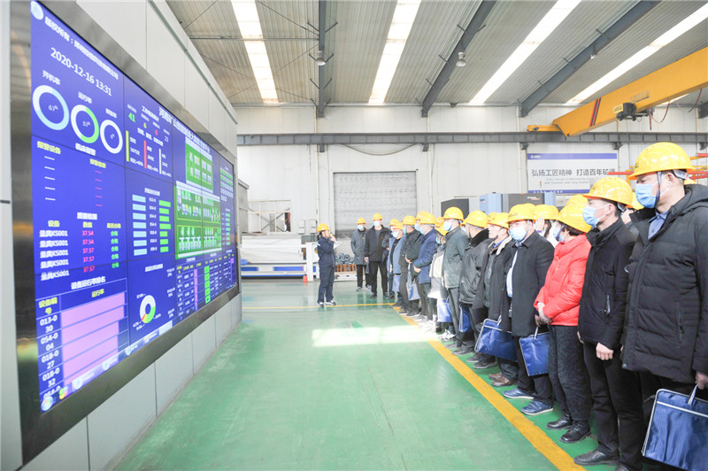 ▲與會(huì)領(lǐng)導(dǎo)一行參觀公司總部智能車間