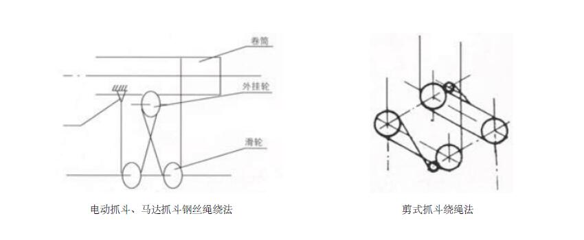 雙繩抓斗和四繩抓斗的鋼絲繩繞法圖解